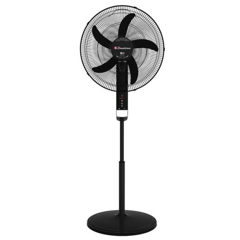 The Binatone RCF‑1858 Rechargeable Stand Fan delivers portable cooling with a long‑life 14.8 V lithium‑ion battery that runs up to 50 hours on low speed and up to 8 hours on high speed. It features 9 adjustable fan speeds, built‑in oscillation, and an adjustable height up to 1.5 m for flexible airflow coverage. The fan includes a remote control, built-in LED night light, USB charging port for devices, and advanced battery protection for safe, reliable use. Charging fully takes 7–9 hours, and it operates on both AC power and rechargeable battery modes for continuous comfort during power outages.