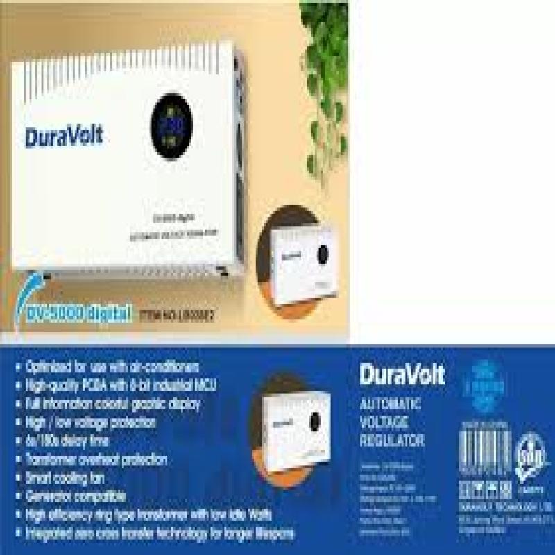 The DuraVolt AVR DV-10000 Digital Slim Type is designed to stabilize high-capacity electrical loads by regulating voltage fluctuations. It features a digital display for real-time voltage monitoring, fast automatic correction, and a slim, space-saving design suitable for homes, offices, and commercial equipment.