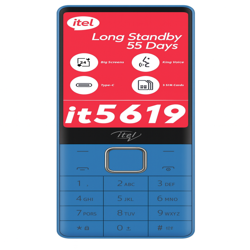 The Itel IT5619 is a practical and affordable feature phone built for everyday communication and extended usage. It comes with a 2.4″ big bright screen that makes navigation and viewing easy. With Triple SIM support, you can manage multiple numbers on one device effortlessly. A 2500mAh battery delivers excellent standby and talk time for prolonged use without frequent charging. Enjoy wireless FM radio, Opera Mini browser, Bluetooth, and King Voice for enhanced audio clarity. The phone also supports expandable storage up to 32GB for music and media, and includes a rear camera for basic photos. Its Type-C charging port and ultra-slim portable design make it convenient and modern.