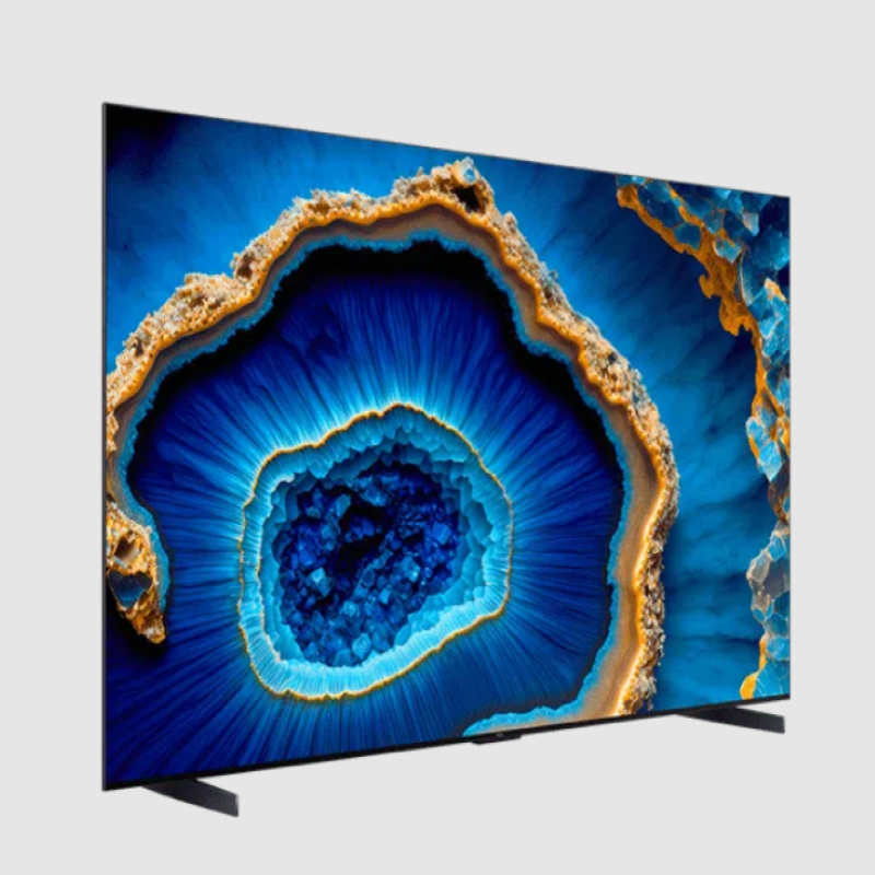 The TCL 98C755 features a 98-inch QD-Mini LED display with 4K Ultra HD resolution that delivers detailed and vibrant visuals. QD-Mini LED technology combines Quantum Dot color with Mini-LED backlighting to improve brightness, contrast, and color accuracy. Full Array Local Dimming with over a thousand dimming zones provides precise light control for deeper blacks and brighter highlights. The AiPQ Processor 3.0 automatically optimizes contrast, color, and clarity in real time. Support for Dolby Vision and HDR10+ enhances dynamic range and picture detail. A 144Hz Variable Refresh Rate ensures smooth motion for gaming and fast-action content. ONKYO 2.1 channel speakers with Dolby Atmos provide immersive audio with enhanced bass. Google TV offers access to streaming apps, voice control with Google Assistant, and built-in Chromecast for easy content casting.