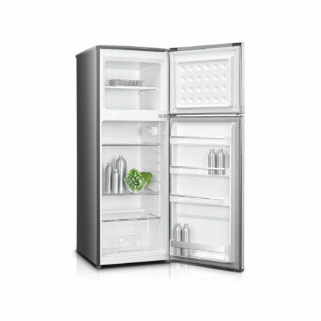 Introducing the BRUHM BFD-195MD Double Door Refrigerator, designed for both style and functionality with a total capacity of 181 liters. Featuring a striking silver door and a sleek grey body, this refrigerator enhances any kitchen space. The reversible door allows for versatile installation options, while the mechanical temperature control provides easy adjustments for optimal cooling. With two glass shelves and a large freezer zone, this model ensures efficient organization and storage of your food items.
