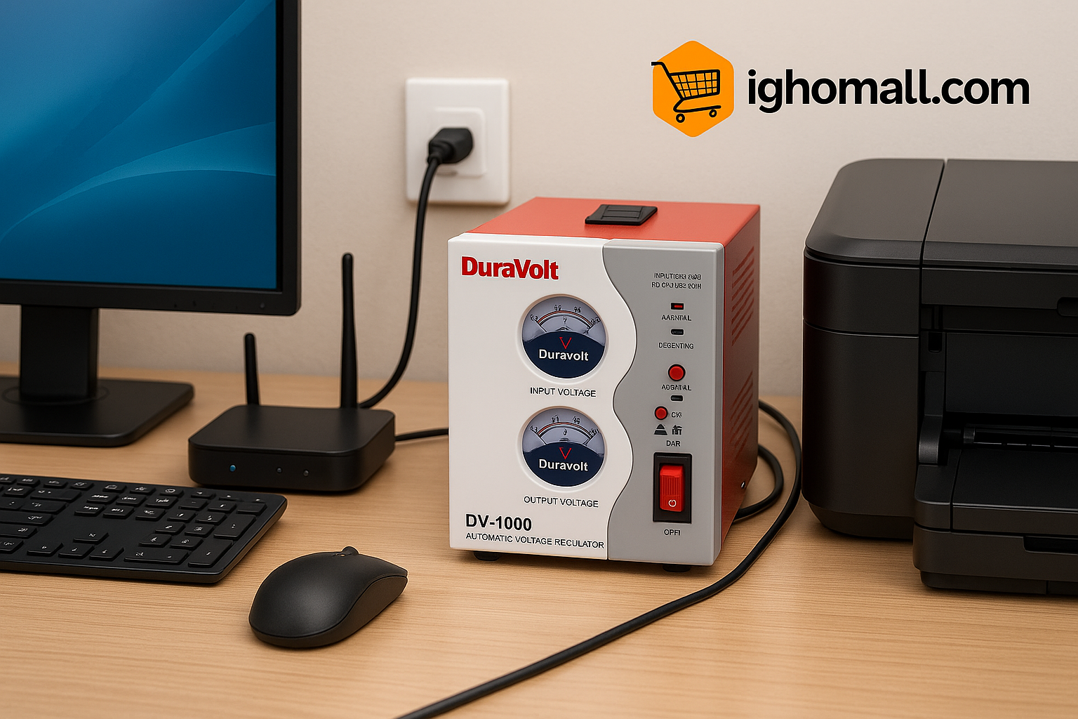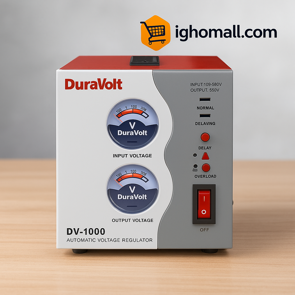 The Duravolt Automatic Voltage Relay Stabilizer DV-1000 is engineered for optimal performance with a compact design. It efficiently stabilizes voltage fluctuations, ensuring your appliances receive consistent power. The device features a user-friendly interface, automatic operation, and durable construction for long-lasting use.