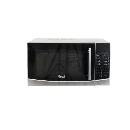 The Royal 34-Litre Microwave (RMW34SMP) offers powerful and efficient cooking with multiple pre-set options. It features a spacious 34-litre capacity ideal for family meals. Equipped with a digital control panel, it allows precise cooking settings and timing. The microwave also includes a defrost function for quick thawing, a sleek stainless steel finish for durability, and an easy-to-clean interior.