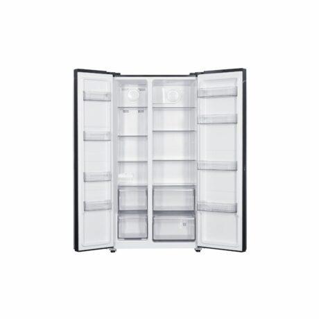 Introducing the BRUHM BFX-436ENG Side-by-Side Refrigerator, offering an impressive 436 liters of storage capacity designed to keep your food fresh and organized. Featuring a sleek black glass door, this no-frost refrigerator combines style and functionality, making it a perfect addition to any modern kitchen. The external LED display and interior LED light provide easy visibility of your stored items, while the twist ice maker ensures you always have ice at hand for your drinks.