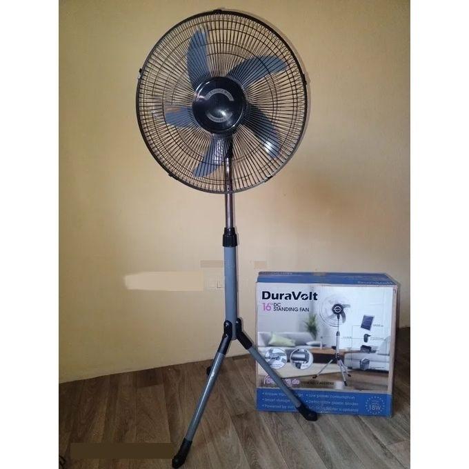 The Duravolt 16" DC Standing Fan DSF-163 DC delivers powerful cooling with its 16-inch blades, operating efficiently on DC power. It features three adjustable speed settings for personalized airflow and a built-in rechargeable battery, ensuring uninterrupted use even during power outages. The fan is designed for stability with a sturdy base and offers oscillation for wide area coverage. Its lightweight construction makes it easy to move around, while the quiet operation allows for comfortable use in any setting.