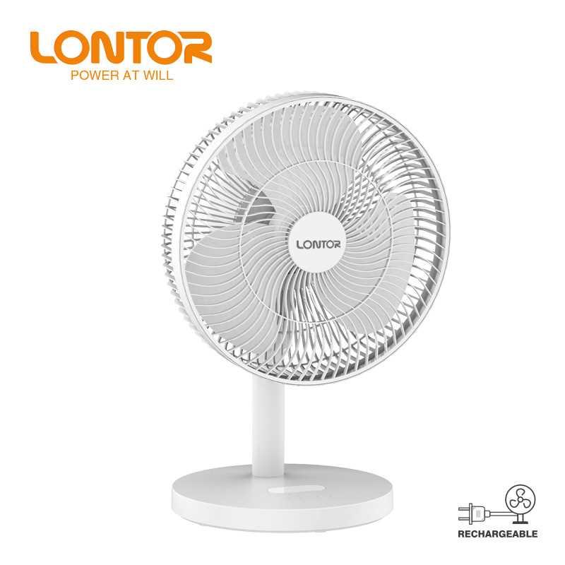The Lontor 12" Rechargeable Table Fan (Model: CTL-CF026-12) combines portability and efficiency, providing effective cooling for various settings.