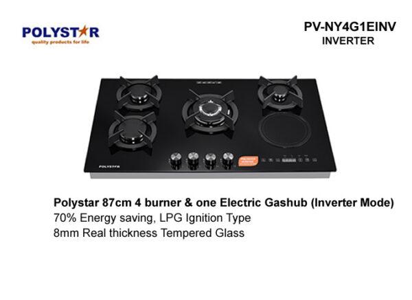 - Model: POLYSTAR 87CM 4+1 Tempered Glass (Inverter) Built-In Gas Hub