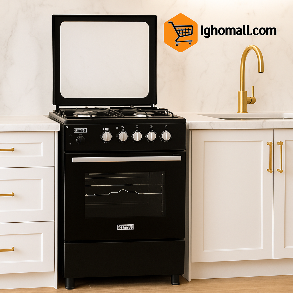 The Scanfrost 60x60 3 Gas Burners with 1 Hotplate in black offers a blend of functionality and modern design, making it an ideal choice for those seeking efficiency and style in their kitchen.
