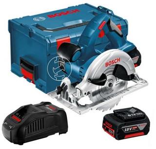 The Bosch GKS 18 V-LI Circular Saw is a high-performance, cordless saw designed for professionals who need power and precision in their cutting tasks. Powered by two 5.0 Ah lithium-ion batteries, this saw offers extended runtime, allowing you to tackle demanding tasks without interruptions. With a no-load speed of 3,400 RPM and a 190 mm saw blade, it delivers clean, accurate cuts in wood, plywood, and other materials. The saw features Bosch's innovative electronic cell protection (ECP) to protect the battery and motor, while the ergonomic design ensures comfortable handling and better control.