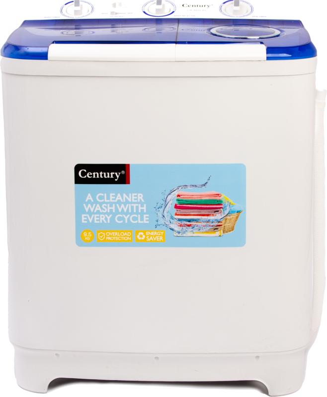 The Century 9.5KG Twin Tub Washing Machine (CW8522-A2) is designed for those who require both efficiency and capacity in their laundry routine. With an impressive washing capacity of 9.5kg and a spinning capacity of 6.5kg, this twin tub machine allows you to tackle large laundry loads with ease. Its water-proof and rust-proof full plastic body ensures durability, making it a reliable addition to your home. The new box mechanism lint filter captures lint and debris effectively, providing cleaner results.