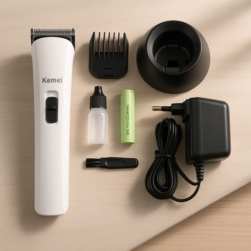 The Kiki New Gain Professional Hair Clipper km-2599 features a powerful 2000mAh rechargeable battery for extended cordless use, a sharp stainless steel blade for precise cutting, and an LED display for real-time battery and speed monitoring. It offers multiple cutting lengths with adjustable taper control, supports both corded and cordless operation, and includes a quiet, high-performance motor for smooth trimming. The ergonomic design ensures comfortable handling, while the quick-charging function minimizes downtime. The clipper is easy to clean and maintain, making it ideal for professional and home use.