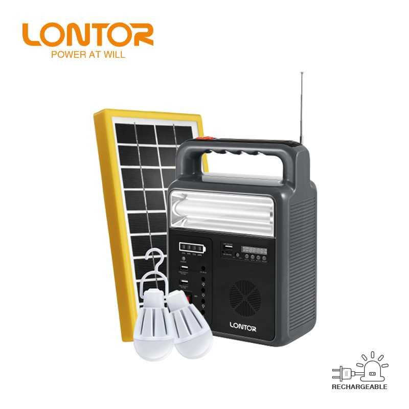 The Lontor SLK016 is a versatile solar-powered lighting kit designed to provide illumination and entertainment in off-grid locations. It features multiple lighting options, a built-in radio, Bluetooth connectivity, and a substantial rechargeable battery, ensuring reliable performance in various environments.