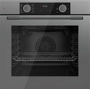 The Maxi 60cm Electrical Built-in Oven | MAXIOVENQX9GR is designed for modern kitchens, offering exceptional functionality and style. With a multi-functional design, it allows you to bake, grill, and roast with precision. The large 60cm cavity provides ample cooking space, and multiple cooking modes enhance versatility. Equipped with a touch control panel, the oven is user-friendly and easy to operate. Its sleek stainless steel exterior ensures durability and a contemporary look. Energy-efficient technology reduces power consumption, while the auto shut-off feature enhances safety. A built-in cooling fan prevents overheating, and integrated LED lights ensure excellent visibility. The rotisserie function guarantees evenly roasted meats, and the enamel-coated interior makes cleaning hassle-free. The built-in design saves space while elevating your kitchen’s aesthetics.