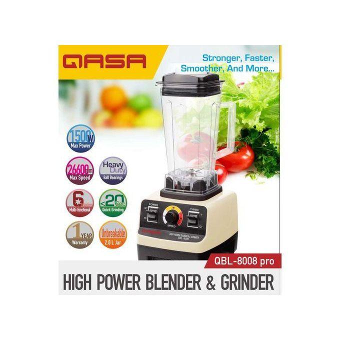 Qasa High Power 1500W Blender & Grinder (Model: QBL-8008 Pro3) is engineered for high-performance blending and grinding. With a robust 1500W motor and a 2-liter BPA-free jar, this versatile appliance is perfect for a variety of kitchen tasks, from smoothies to grinding spices.