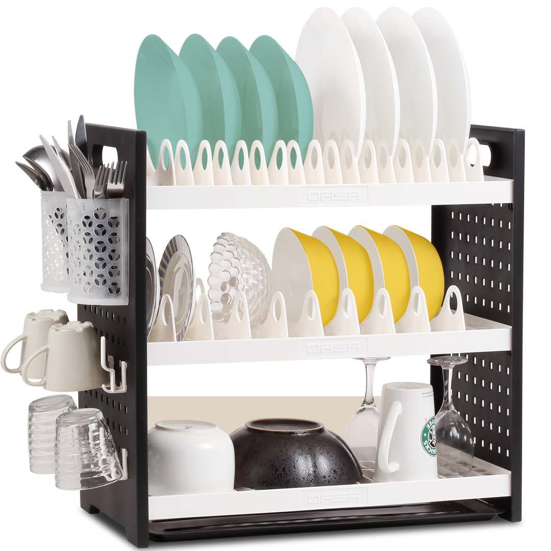 The Qasa Plate Rack Dish Drainer 3 Layers QDR-352 offers a highly efficient and space-saving solution for drying dishes. This three-layer design accommodates various dish types while ensuring quick drainage and easy organization.