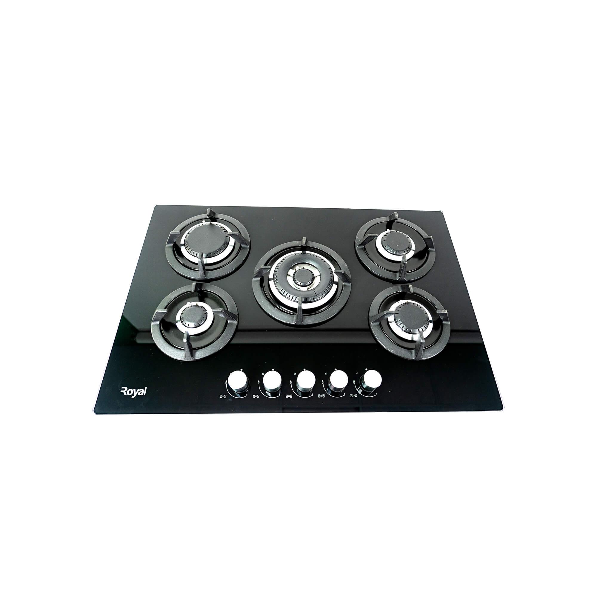 The Royal 75cm Built-In Gas Hob (RBGH75G5B) features five durable gas burners for versatile cooking. It has a tempered glass surface that is easy to clean and stylish. The automatic ignition ensures effortless lighting, while the flame failure safety device enhances safety during use. Designed for built-in installation, it seamlessly integrates into your kitchen decor. The hob also comes with cast iron grates for superior stability and heat retention, ensuring your cookware remains secure.