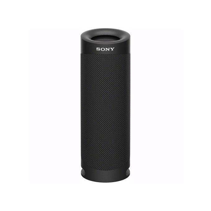 The Sony SRS-XB23 is a portable wireless Bluetooth speaker designed for powerful sound and durability. It features EXTRA BASS technology for deep, punchy bass. The speaker is waterproof and dustproof with an IP67 rating, making it perfect for outdoor use. With a 12-hour battery life, it keeps the music going all day. It supports Bluetooth and NFC for easy connectivity and has a built-in microphone for hands-free calls. The compact design allows for easy portability, and it comes with a multi-color line light for added ambiance.